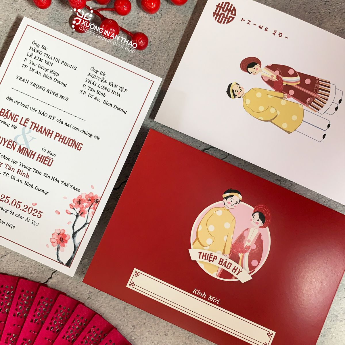 Thiệp Báo Hỷ Chibi Áo Dài (Đỏ Đô) - ATK12Y