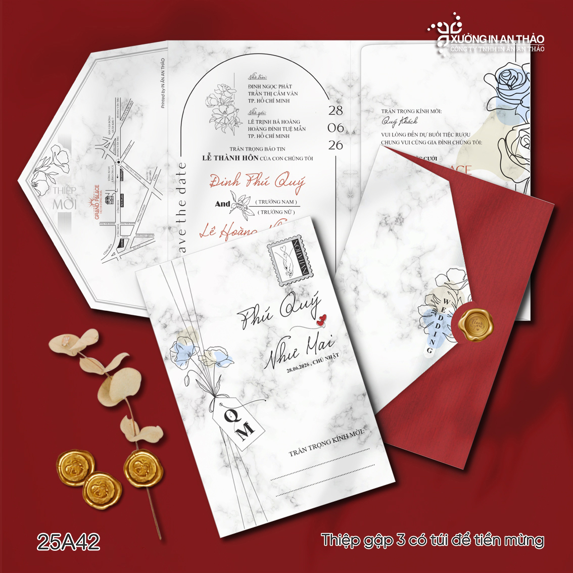 Thiệp Cưới Gập 3 Có Túi - 25A42